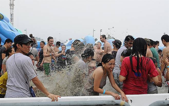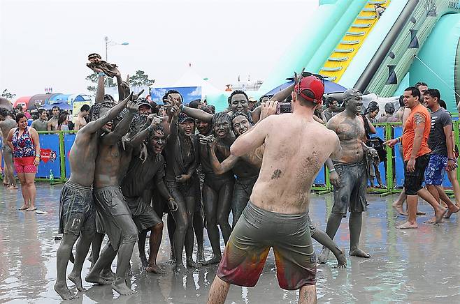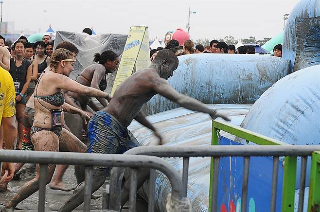 | ▲ 보령머드축제 축제장은 전세계 각지에서 온 관광객들로 넘쳐난다. 보령 머드축제는 겨울의 화천 산천어축제와 함께 한국의 대표적인 축제로 이름나 있다. |