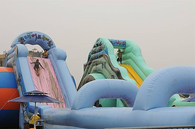 | ▲ 머드슬라이딩 길이 20m 이상의 미끄럼틀을 미끄러진다. |