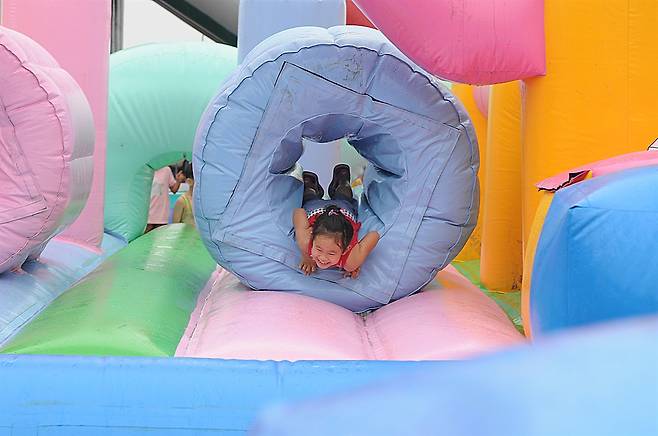 | ▲ 머드패밀리존 아이가 들어가서 신나게 노는 공간. 보호자인 어른이 같이 들어갈 수 있다. |