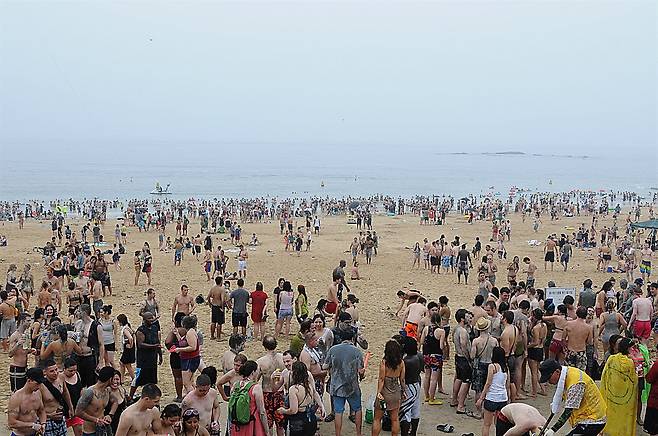 | ▲ 대천해수욕장 축제 기간의 해수욕장은 수많은 사람들로 가득하다. 이런 혼잡함이 싫어서 오지 않는 사람들도 있다. |