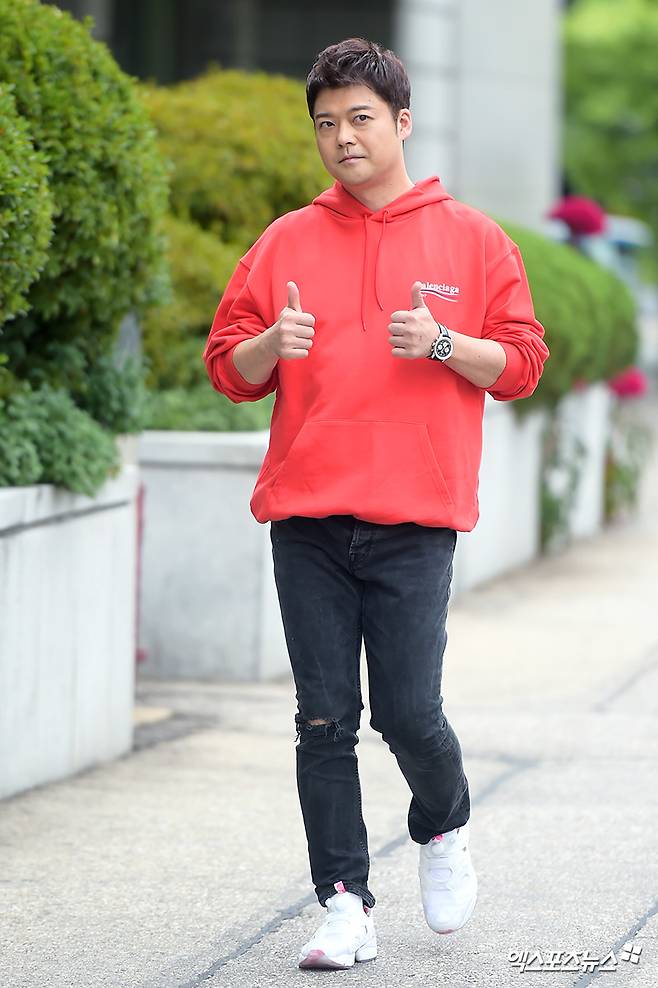 [엑스포츠뉴스 서예진 기자] 15일 오전 서울 여의도동 KBS별관에서 열린 KBS2 '해피투게더3' 녹화에 참석한 전현무가 출근길에 포토타임을 갖고 있다.