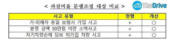현재 손해보험협회에 설치된 ‘구상금분쟁심의위원회’는 같은 보험사 가입 차량 사이에서 발생한 사고나 50만원 미만의 소액 사고 등을 조정 대상에서 제외하고 있다. 때문에 소비자들은 과실비율에 문제를 제기하려면 소송 외에는 방법이 없었다. 지난해 발생한 같은 보험사 가입 차량 간 사고는 약 5만 6000건이었다.