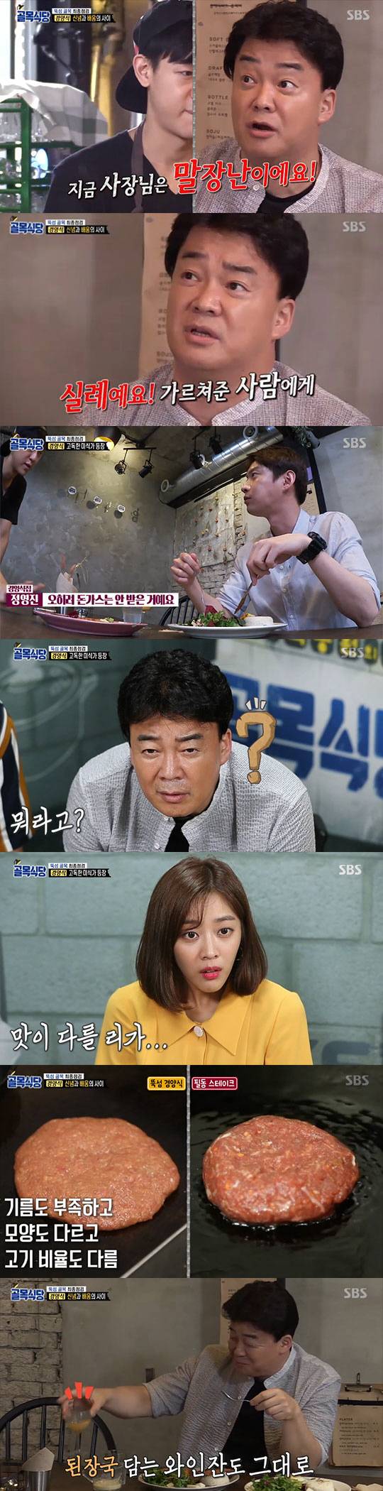 백종원은 답답함과 분노를 참지 못하고 직접 경양식집을 찾았다. 백종원은 "필동 레시피대로 안한 이유가 뭐냐"고 물었다. "그분이 연구한 걸 그대로 쓸순 없었다"는 말에 천하의 백종원도 "그럼 배우지 말았어야지, 지금 말장난하는 것"이라며 목소리가 높아졌다. 사장님은 식감도 맛도 자신이 만든 함박이 더 좋다는 입장을 고수했다.
