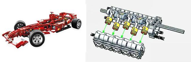 레고 자동차에 대한 소비자 관심도 크다. 특히 특정 레이스카를 바탕으로 만든 제품들의 가격이 치솟는 경우도 많다. 페라리 F1 레고는 현재 100~200만 원대에 거래된다. 제품코드 8674로 불리는 모델 얘기다. 이 제품은 지난 2006년에 시장에 나왔다. 1:8 스케일로 만들어졌으며 차를 앞뒤로 움직이면 이에 따라 엔진이 함께 작동하기도 한다. 레고 페라리는 단순한 외형뿐 아니라 엔진 속 실린더의 움직임도 실제와 같다. 자동차 엔진의 피스톤은 정해진 규칙에 따라 짝을 이뤄 작동하는데 이런 세부적인 요소까지 담아냈다는 점도 마니아들을 열광하게 한다. 단순히 레이스카 디자인에 바퀴만 달아놓은 것이 아니라 서스펜션의 구조까지 최대한 흡사하게 구현됐다. 또한 이와 같은 제품들은 각 제조사들의 공식 라이센스를 통해 만들어진다.
