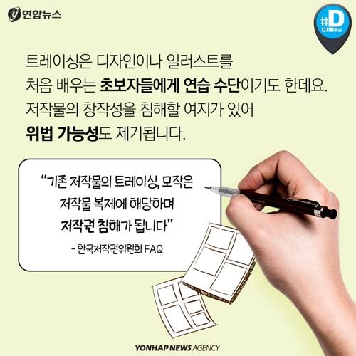 한국저작권위원회 관계자는 "트레이싱은 영리, 비영리 목적과 상관없이 저작권 침해를 수반할 수 있다"며 "타인의 저작물을 이용할 경우 해당 저작자의 허락이 필요하다"고 말합니다.