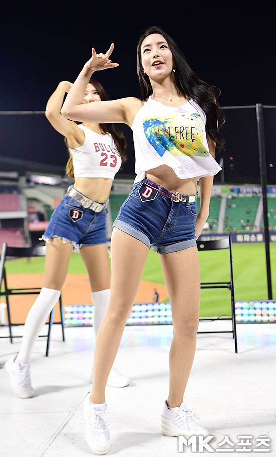 두산 치어리더들이 가수 청아 노래에 맞춰 특별공연을 하고 있다.