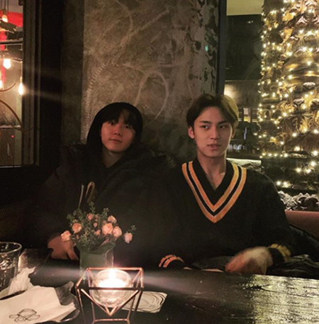 사진 속엔 화장기 없는 얼굴을 한 승관과 민규가 있다. 둘은 음식점으로 보이는 곳에 나란히 앉아있다. 둘은 니트와 패딩을 입고 있는데도 불구하고 완벽한 외모를 드러내며 현실 남친미를 뽐냈다.