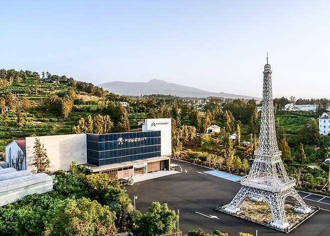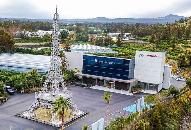 제주에 에펠탑이 뾰족이 솟았다. 12월 5일, 제주도 서귀포 중문의 ‘푸조 시트로엥 자동차박물관’ 입구에 들어서는 순간, 우뚝 선 에펠탑이 시선을 사로잡았다. 그 주위를 상큼한 하늘색 시트로엥 2CV를 몰고 ‘포롱포롱’ 달렸다. 개선문 사진과 조각상 어우러진 풍경이 어디선가 흘러나오는 샹송과 더불어 더없이 이채롭다. 제주 속의 작은 프랑스였다.