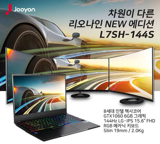 주연테크는 게이밍 최적화 144Hz 패널을 장착한 8세대 노트북 리오나인 L7SH-144S를 출시했다.