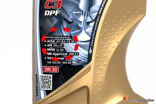 ACEA는 A, B, C, E 규격까지 제시하고 있습니다. 이 가운데 A규격은 가솔린 엔진오일, B규격은 DPF 미장착 디젤연료 엔진오일, E규격은 상용 대형차나 중장비 차량 디젤연료 엔진오일인데, DPF가 장착된 전용 엔진오일은 바로 C규격을 따릅니다. 그래서 좀 아는체 하는 사람들 끼리 ‘C카테고리 오일’이라고도 부릅니다.