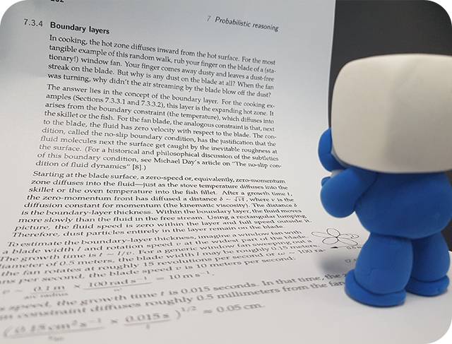 마침 책에서 환풍기를 예로 들며 경계층을 설명하고 있었다. 날개 주변 입자는 움직임이 '0'에 이르는데, 이 상태에서 입자가 표면에 붙어버린다고 나와 있다. 그럼 주변의 모든 입자가 다 붙어버린다는 건가? 얼마나 가까이 있는 입자가 붙는 걸까?