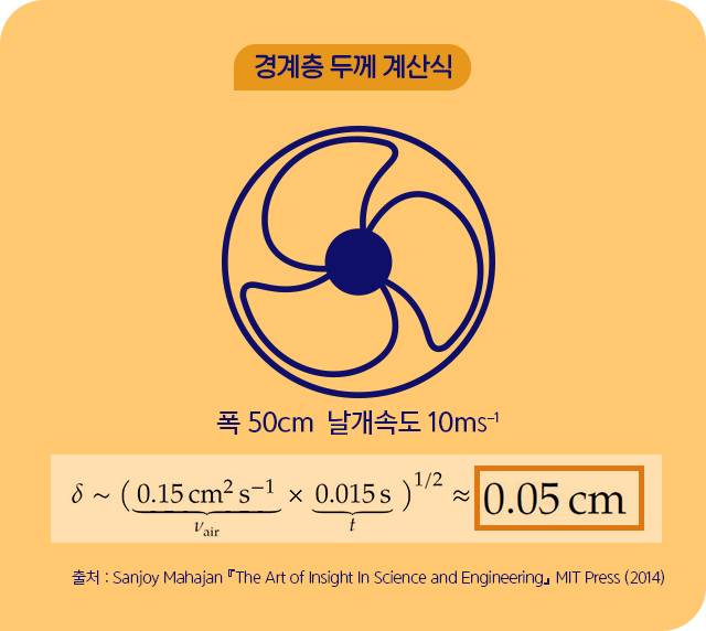 마하잔 교수는 창문형 환풍기를 예로 들었다. 지름 50cm의 날개가 초당 약 15바퀴를 돈다고 가정하고, 점성 계수와 시간을 이용해 계산했다. 그렇게 나온 날개의 경계층 두께는 0.05cm다. 공기 중 작은 입자들이 이 경계층 안에 계속 축적되면, 최대 0.05cm까지 먼지가 쌓일 수 있는 거다. 샤프심 정도의 두께라 육안으로 충분히 확인할 수 있다. 선풍기 청소를 게을리하면 안 되는 이유다.