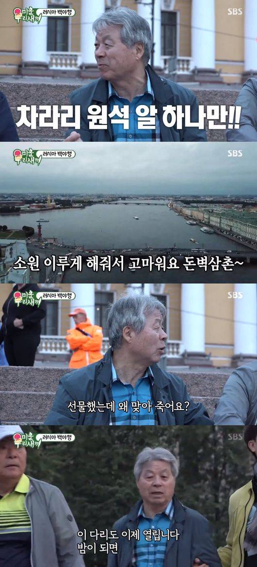 박수홍의 아버지는 진심으로 러시아 여행을 즐겼다. 돈벽 삼촌이 만들어준 푸짐한 아침식사도 즐기고, 평생 보고싶었던 백야를 보기 위해 기차를 타는 것도 즐거워했다.
