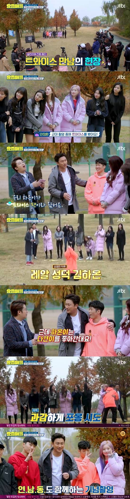 근처에서 트와이스가 촬영 중임을 알게 됐고 안정환은 "내가 친하다"라고 말했다. 이에 김하온은 깜짝 놀라며 "사실 나도 트와이스 팬이다"라고 말했다.