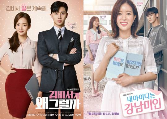 올 여름을 뜨겁게 달군 tvN '김비서가 왜 그럴까'에 이어 JTBC 금토극 '내 아이디는 강남미인'까지. 웹툰을 원작으로 한 로맨스 드라마가 '신드롬'에 가까운 인기를 구가하고 있다. '김비서가 왜 그럴까'는 시청률 10%를 돌파하며 '박서준 신드롬'을 불러왔던 바 있다. 그 기운을 이어받아 '내 아이디는 강남미인' 또한 지난 1일 방송이 5.4%(닐슨코리아, 전국기준)의 시청률로 자체 최고 기록을 경신하며 거침 없는 상승세를 보이고 있다. 이 드라마들이 시청자의 선택을 받을 수 있었던 이유는 뭘까.