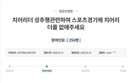 치어리더 폐지에 반대하는 청원도 있다. 청원자는 "나라에서도 청년 일자리 창출한다는데 치어리더 직업을 없애는 것은 '너 나가'라고 말하는 것과 같다"고 말했다. 참여 인원은 12일 오전 6시 40분 2명이다.