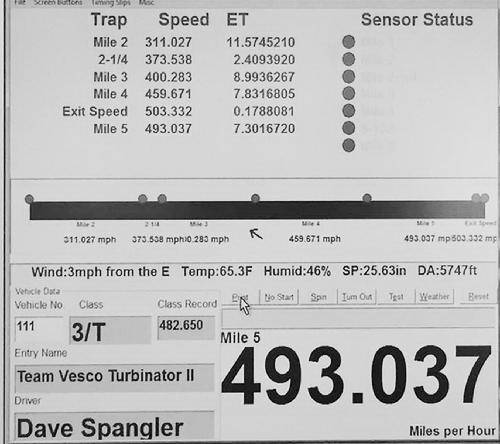 이런 차량과 비교해 베스코 레이싱 터비네이터 II의 시속 503마일 기록은 크게 대단하지 않아 보일 수도 있다. 그러나 블러드하운드는 바퀴달린 동체에 전투기 엔진을 탑재해 제트 추진력으로 달리는 차지만, 터비네이터 II는 제트추진이 아닌 바퀴에 동력을 전달하는 차량이다. 바퀴를 굴려서 달리는 차량으로 시속 500마일의 벽을 넘은 것은 이번이 처음이다.