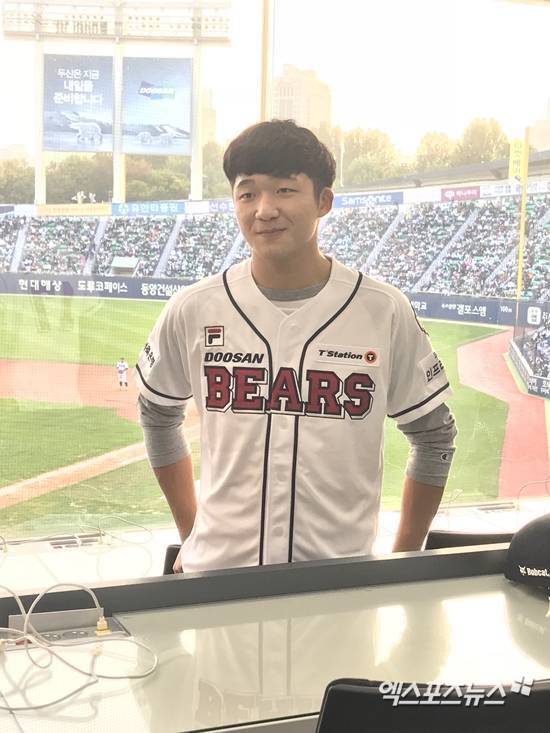 [엑스포츠뉴스 잠실, 채정연 기자] 2019 두산 베어스 1차 지명 김대한이 긴장됐던 잠실 첫 시구의 뒷이야기를 전했다.