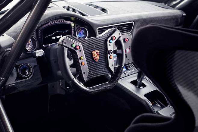 카본 스티어링 휠과 컬러 디스플레이는 2019년식 '911 GT3 R'에서 가져왔다. 레이싱 버킷 시트와 6점식 안전 벨트를 결합한 대형 안전 케이지는 최대의 안전성을 보장한다. 조수석은 옵션으로 선택 가능하다.