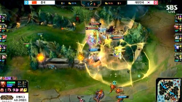 [영상][한국 VS 중국] 스코어의 완벽한 갱킹, 한국 퍼스트 블러드! ▶