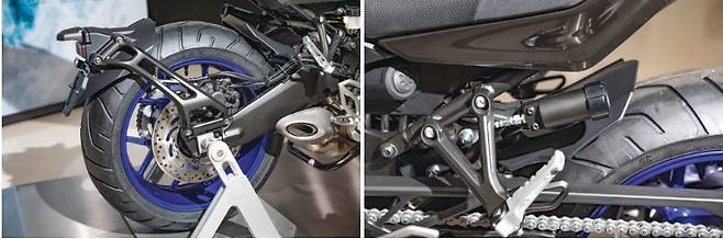 전후 하중 배분이 5 대 5를 유지한다. 완전히 새롭게 설계된 하이브리드 프레임에 알루미늄 리어 스윙암을 장착했다. 또한 두 개의 15인치 앞바퀴가 다양한 노면을 유연하게 읽어내면서 그립을 잃지 않고 안전하게 선회할 수 있으며 강한 브레이킹에도 흔들림이 줄어 안정감을 유지할 수 있다.