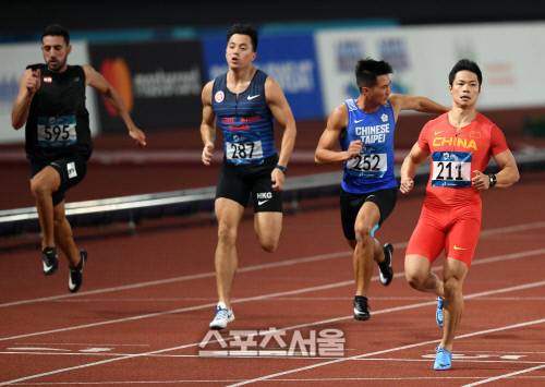 [포토] 육상 100m 쑤빙텐, 여유있게 결승선 통과