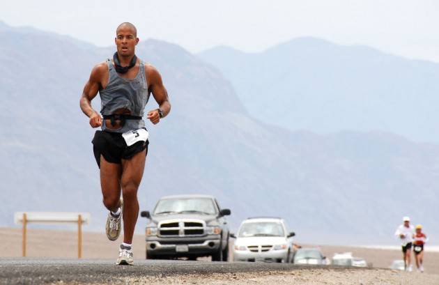 고긴스는 2005년 11월 24시간 안에 최대한 멀리 뛰는 ‘샌디에이고 원 데이 마라톤’에 참가합니다. 몸무게는 240파운드(109㎏), 1년 동안 육상화를 신어본 적이 없었던 그에게 그야말로 ‘지옥의 레이스’였습니다. 12시간 동안 이를 악물고 70마일(113㎞)는 뛰었지만, 온몸에서 죽음을 경고하는 신호가 왔습니다. 무릎아래 압박골절이 왔습니다. 정강이는 그야말로 뼈가 부서지는 통증이었습니다. 발목과 발가락 사이의 뼈들도 부서졌습니다. 혈변이 팬티 밖으로 새어나왔지만, 뛰고 또 뛰어서 19시간 만에 101마일을 뜁니다.