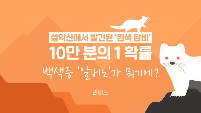 예로부터 몸이 하얀 동물은 길(吉)한 징조로 여겨졌습니다. 하지만 알비노처럼 야생에서 흰색으로 태어난 동물은 생존에 불리한 것이 일반적입니다. 보호색이 없어서 천적에게 쉽게 노출되고 사냥 활동에도 제약이 많기 때문입니다. 예외도 있습니다. 최근 설악산에서 발견된 담비가 바로 예외 사례인데요.