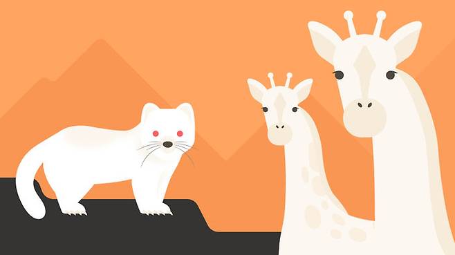 피부나 털이 하얀빛을 띤다고 해서 모두 알비노는 아닙니다. 지난해 9월, 케냐에서 세계 최초로 하얀색 기린 한 쌍이 포착됐습니다. 두 마리의 하얀 기린은 어미와 새끼로 알려졌는데요. 지난 2016년 탄자니아와 케냐에서 하얀색 기린이 발견됐지만, 한 쌍이 동시에 발견된 것은 처음이었습니다.