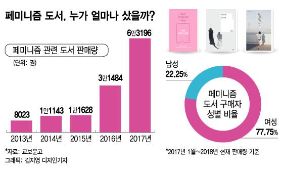 이를 증명하듯 페미니즘 도서 판매량은 가파르게 성장하고 있다. 교보문고에 따르면 2013년 8023권에 불과했던 페미니즘 관련 도서 매출 권수는