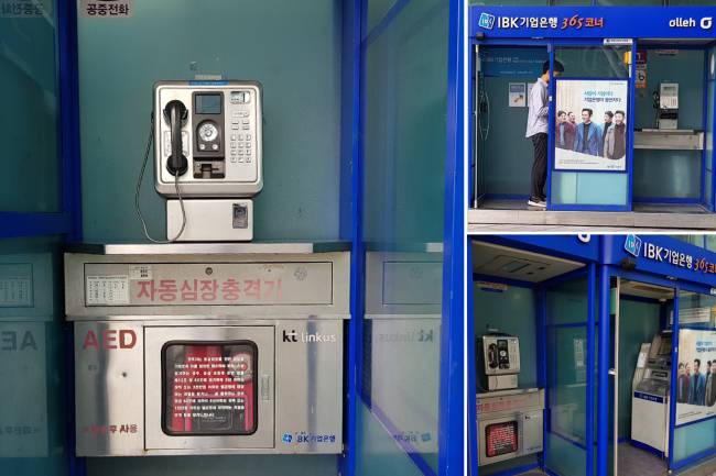 공중전화 부스에 현금자동입출금기(ATM), 자동심장충격기(AED) 등이 결합된 부스도 있다. 서울역에 있는 멀티부스가 대표적 예. 직접 서울역 멀티부스를 관찰해봤다. 이곳을 찾는 사람 대부분은 ATM기 이용자였다. 30분이 지나서야 공중전화를 이용하는 사람이 나타났다. 김부자(80) 씨는 “딸이 휴대폰 고장으로 내 휴대폰을 들고 갔다”며 수화기를 들었다. 김 씨는 동전을 바꿔왔다. 200원을 넣었다. 요즘 공중전화 기본요금은 70원이다.