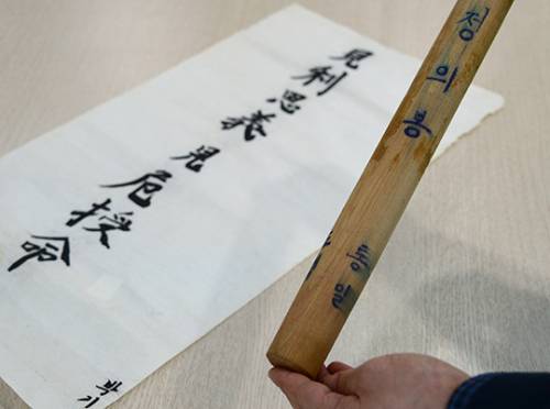 박씨가 40㎝ 길이의 몽둥이를 감싼 흰 종이를 벗겨내자 이번에는 더 낡은 종이가 정의봉을 덮고 있었다. 종이에는 검은 붓글씨로 8자의 한자가 적혀 있다. '견리사의 견위수명'(見利思義 見危授命·이로운 것을 보았을 때 정의를 생각하고, 위태로움을 당했을 때는 목숨을 바쳐라)’.