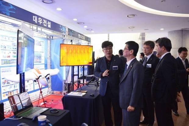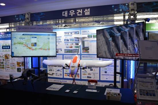 대우건설은 기술연구원이 개발한 스마트 건설기술을 지난 27일 국토교통부 주최 ‘2018 스마트 건설기술·안전대전’에 선보였다고 밝혔다. 대우건설은 이 자리에서 스마트건설기술을 활용한 공사현장 안전 및 공정관리, 대우스마트건설시스템(DSC) 현황판, 드론을 활용한 3차원(3D) 맵핑, 자체 제작한 고정익 드론 등이 관람객들의 주목을 받았다. 대우건설의 부스에는 손병석 국토부 차관 등 건설업계 관계자들의 발걸음이 이어졌다.