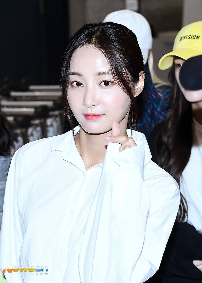 이날 모모랜드(혜빈, 연우, 제인, 태하, 나윤, 데이지, 아인, 주이, 낸시) 연우가 입국장에서 걸어나오고 있다.