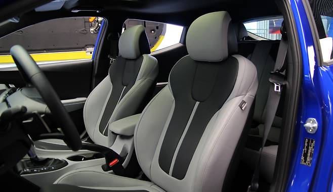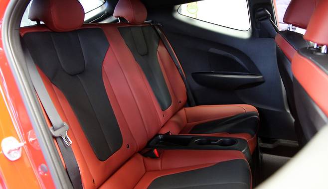 자칫 심심해 보일 수 있는 부분에는 스포티한 요소를 두었습니다. 예컨대 계기판과 조수석 앞쪽 대시보드에는 체커기 패턴을 새겼습니다. 운전대와 시트, 변속기에는 포인트 컬러로 터치했어요. 그러나 완전한 스포츠카의 감성을 누리긴 어렵습니다. 낮게 깔린 센터터널은 앞바퀴를 굴리는 이 차의 한계를 드러내거든요. 보태어 비대칭 구조로 조수석과 운전석을 분리한 디테일도 아쉬운 요소. 극적인 디자인을 뽑아낸 것도 아니면서 오히려 조수석 무릎 공간만 차지하는 역효과를 만들었습니다. 실제로 조수석에 타면 왼쪽 무릎에 센터페시아가 닿습니다.