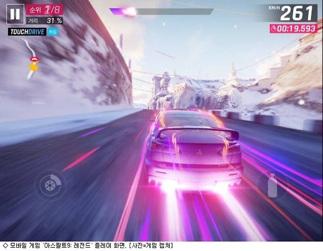 서너 시간은 기본적으로 플레이해야 겨우 레벨업이 가능한 요즘 모바일 게임에 지쳤다면 아스팔트9으로 새로운 재미를 느낄 수 있을 듯하다.