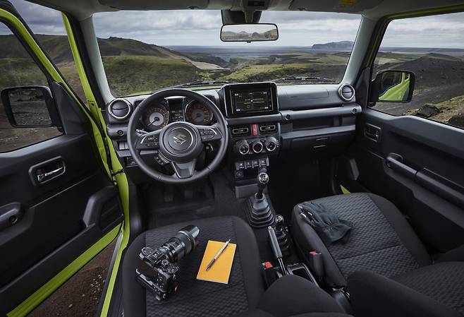 실내는 검은색 내장재로 깔끔함을 더하고 센터페시아 상단 디스플레이 모니터와 버튼 배열 등은 투박하지만 운전자 사용에 최적화된 디자인을 선보인다. 스즈키 짐니에는 사다리꼴 프레임 섀시와 로우 기어를 포함한 파트타임 4WD 시스템이 기본 적용된다. 엔진은 1.5리터 가솔린이 탑재돼 최고 출력 102마력을 발휘한다. 5단 수동 모델의 경우 유럽시장 기준 14.7km/ℓ의 연비를 기록했다.