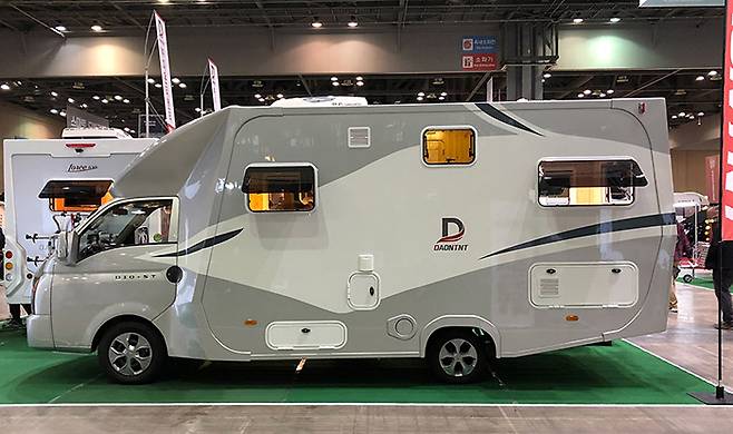 다온티앤티는 포터 II를 기반으로 캠핑카를 제작하고 있다. 곡선이 중심이 되는 화려한 외형과 캠핑카의 후방 영역을 사선으로 올려 이탈각을 크게 설계한 것이 디자인의 특징이다. 이번 전시회에는 포스시리즈인 포스 650, 디오 에스티, 씨티밴-샤워실 버전 등의 모델을 전시한다.