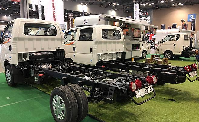 홈스밴 모델과 프레미오 모델을 제작하고 있는 나르미모터스에서는 봉고3의 섀시 모델을 전시한다.