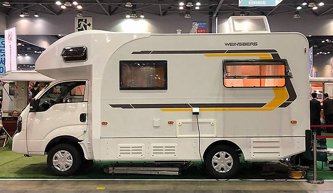 힐링캠핑카에서는 바인스버그 카라투 카라반을 이용해 봉고3 모델과 결합한 캠핑카를 전시한다.