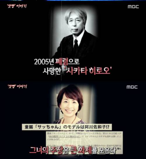 이에 '삿짱' 가사를 쓴 사카타 히로오(첫 번째 사진)는 쏟아지는 언론 질문에 "근처에 살던 소녀를 모델로 한 것"이라는 대답뿐 그 이상은 언급을 회피했다.
