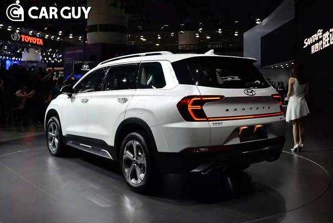 먼저 지난달 16일 중국 광저우 국제모터쇼에서 공개됐던 중국 현지형 싼타페(중국명 셩다-胜达)다. 내수형과는 크게 다른 테일램프 디자인을 선보여 국내 네티즌 사이에서 화제가 됐다. 제네시스 G90와 마찬가지로 일직선으로 길게 이어진 LED 테일램프 안쪽에 싼타페 레터링을 넣은 게 특징이다. 다만 램프의 내부 그래픽이 최신 볼보 차량의 테일램프와 크게 유사해 네티즌의 질타를 받기도 했다.