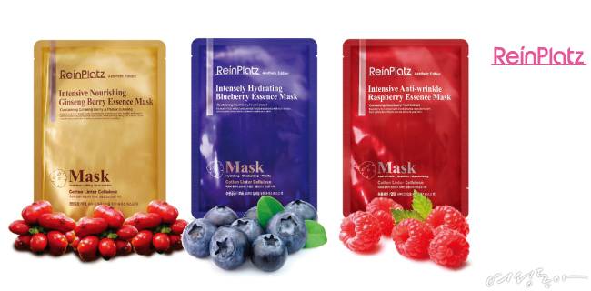 라인플라츠의 마스크팩은 청정 지역 고창에서 재배되는 다양한 베리와 곡물, 녹차, 국화를 주요 성분으로 만든 '라인플라츠 에센스 마스크팩 라인’, 아시아 시장 에스테틱 숍을 공략하기 위해 한방 성분과 5가지 베리 콘셉트의 컬렉션을 중심으로 한 '에스테틱 에디션 베리 5종 마스크팩 라인’으로 구성됐다. 라인플라츠 에스테틱 에디션 베리 5종은 청정 고창의 복분자, 블루베리, 오디, 아로니아, 진생베리 등 5가지 베리 추출물과 플라워 콤플렉스의 시너지로 주름 개선, 미백, 피부 진정, 보습 등의 효능을 지닌다.