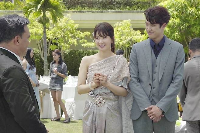 공개된 스틸에는 태국 전통의상 쑤타이를 입고 있는 인아가 두 손을 모은 채 활짝 웃으며 태국식 인사를 하는 모습이 담겼다.