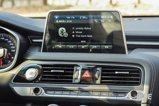 송풍구 옆에는 엔진 스타트 버튼이 있고, 두 개의 송풍구 사이에 비상등 버튼이 있다. 가끔 비상등 버튼이 이상한 곳에 위치한 차들이 종종 있는데, 운전 중 손을 뻗어 가장 누르기 편한 위치에 있었다. 운전 중에 비상등을 사용할 일이 많았는데, 버튼 누르는 감각은 스트로크가 낮으면서도 부드럽게 눌려서 비싼 스위치를 사용했다는 느낌을 준다. 고급 스위치, 다이얼의 느낌은 스티어링 휠에 있는 휠과 업다운 레버 또한 동일하다.