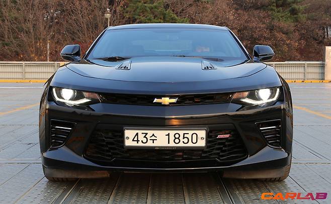 성형수술을 거친 카마로 SS는 페이스리프트 치고 많은 부분을 바꿨다. 얼굴을 싹 뜯어고쳐, 시술이 아니라 '수술'이라 부를만하다. 고광택 검정으로 얼굴 요소들을 통합하고, 차체가 이를 감싸고 있어 투구를 쓴 듯 긴장감이 흐른다.
