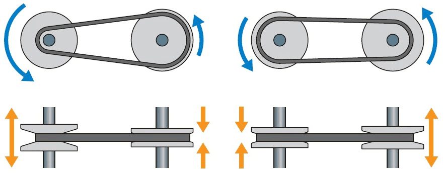그렇다면 CVT에는 기어가 없는데 동력은 어떻게 전하느냐. 기어 역할을 벨트와 풀리가 하는 겁니다. 엔진 쪽과 바퀴 쪽에 뾰족한 산처럼 생긴 풀리를 각각 달고 그 사이를 벨트로 이은 거죠. 이를 바탕으로 각 축의 풀리 간격이 좁혀지거나 멀어짐에 따라 기어비가 바뀌는 효과를 내는 식입니다. 즉 ‘벨트가 감기는 지름의 변화’로 변속이 되는 원리.
