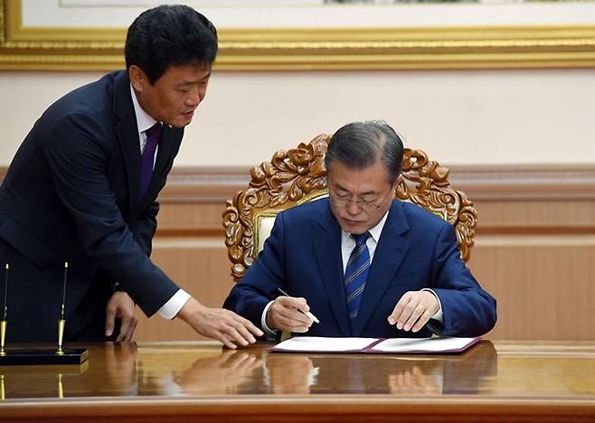 문재인 대통령이 평양 공동선언문을 네임펜으로 서명한 장면이 문 대통령 지지자들 사이에서 공분을 사고 있다.