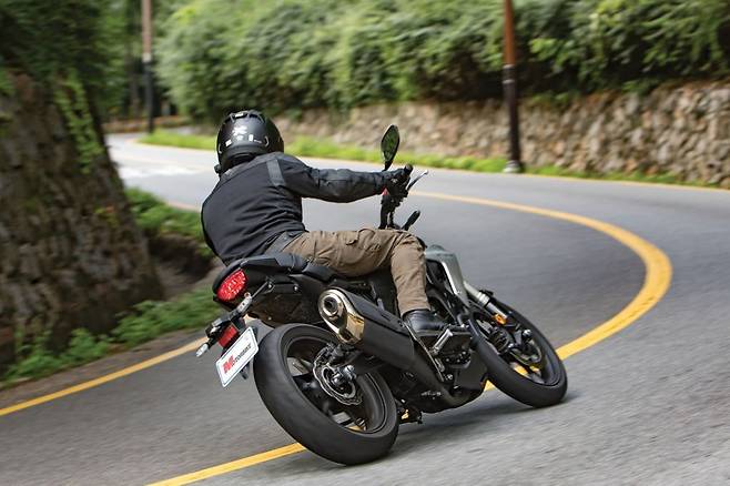 서스펜션 세팅은 네이키드 치곤 하드한 편이지만 일상적인 주행에서 크게 스트레스를 주는 정도는 아니다. 스포티함을 포기하지 않은 세팅에서 콘셉트에 충실한 세팅으로 느껴진다.