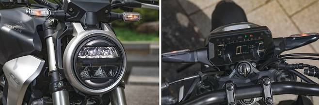 고전적인 원형 속에 미래를 삼킨 듯한 헤드라이트는 LED 방식이며 새로운 CB 시리즈의 얼굴이 된다. 디지털 계기반, LED 등화류로 과거에 매달려있지 않는 현대적인 바이크임을 드러낸다. 바이크의 실루엣은 가볍고 스포티하다.
